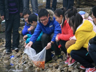 放养金鱼到长江支流河道