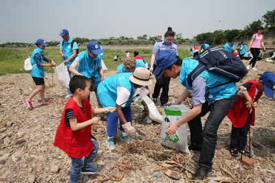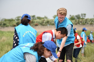 组织外籍志愿者清洁沿江塑料及垃圾