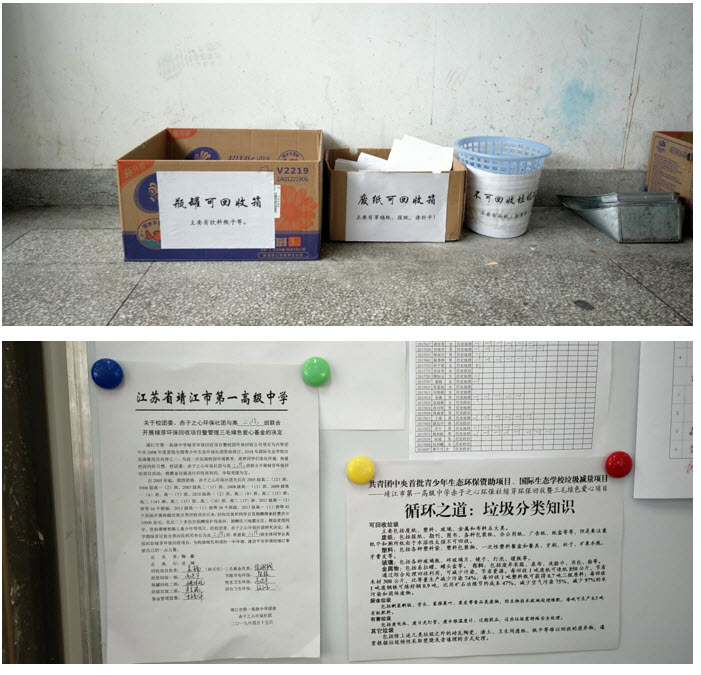 自我校垃圾减量项目试点以来,学校通过开展主题班会、讲座,组织学生走进清爽靖江环保体验馆学习,以及在教室内布置垃圾分类回收点等方式开展垃圾减量,从分类做起。